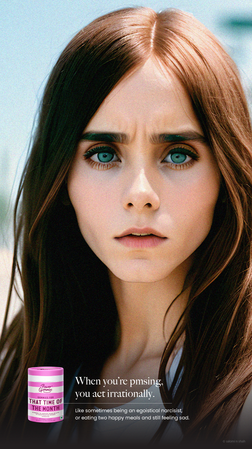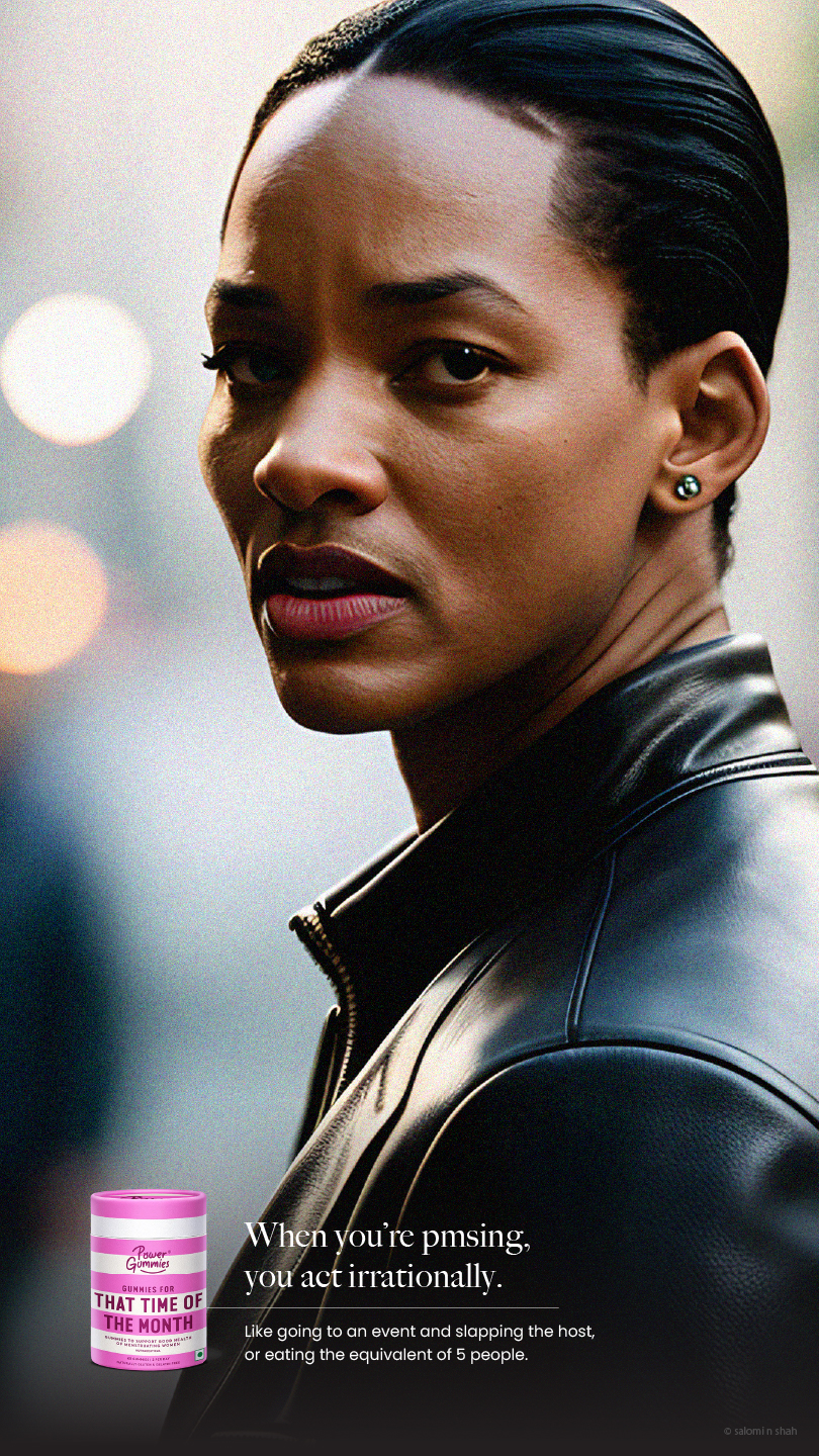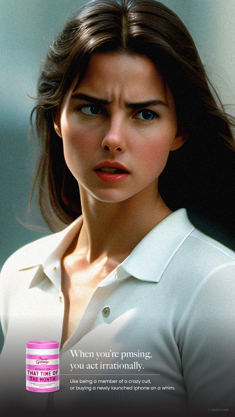 To show the efficacy of the product, we have used famous moments in pop-culture and history with a small twist - the protagonists are women undergoing PMS symptoms, brought to life with the help of AI.