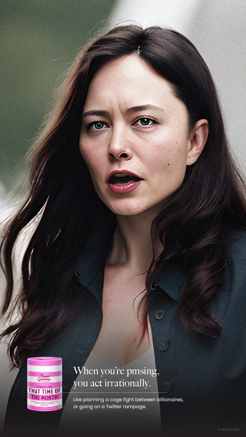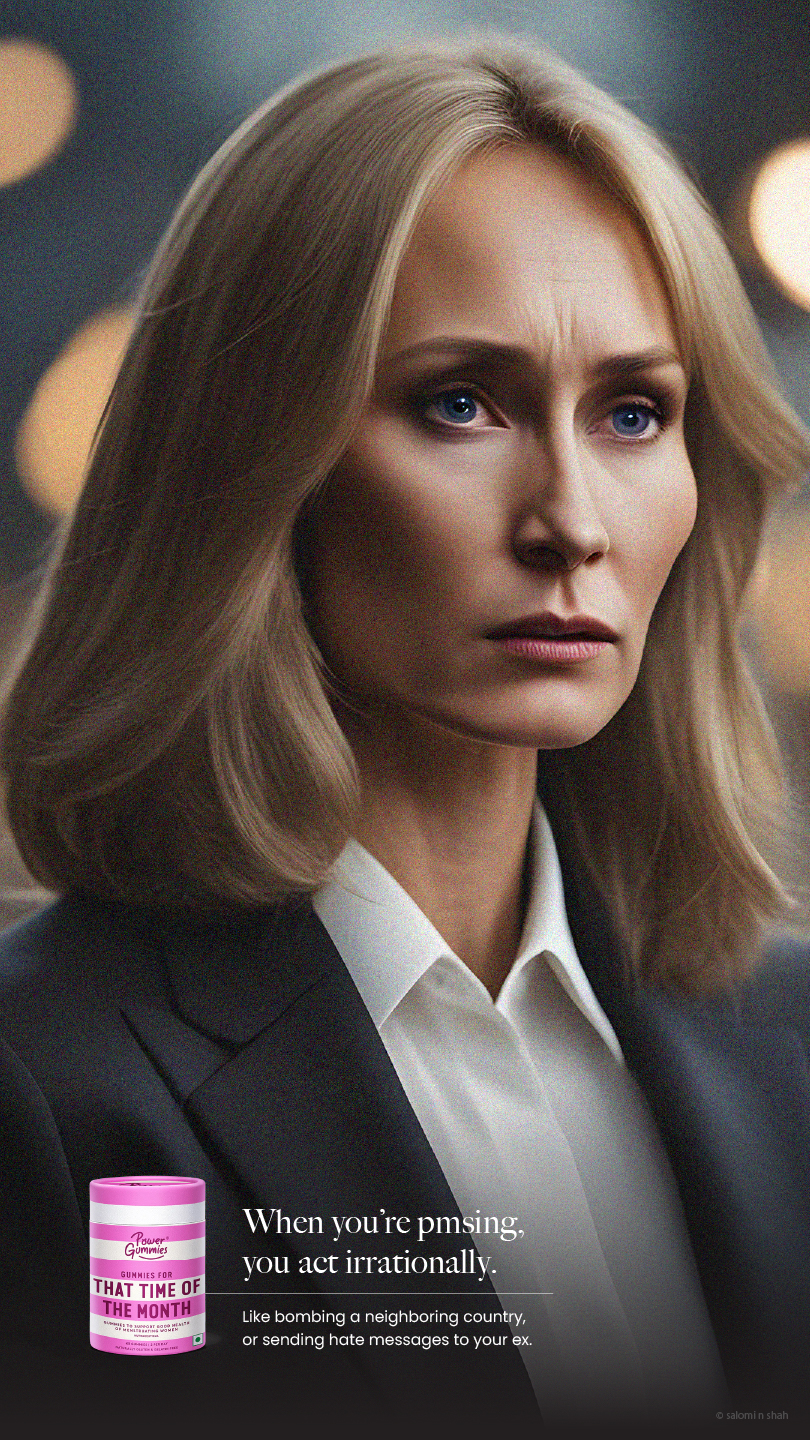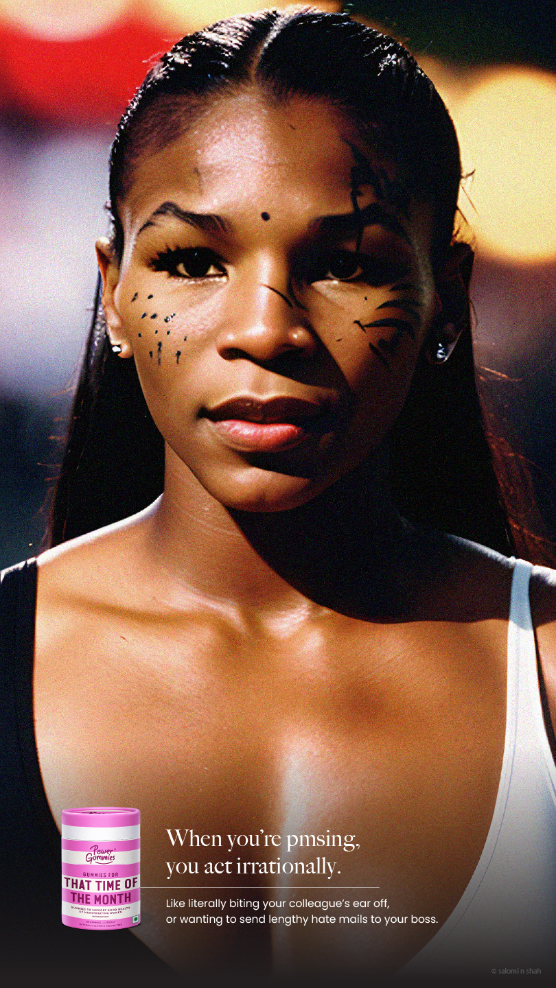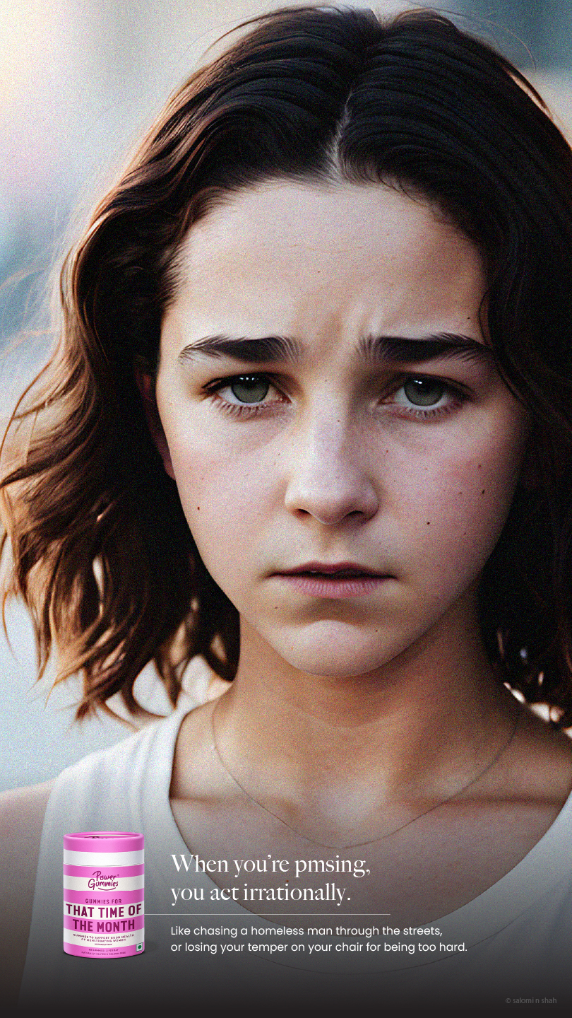 To show the efficacy of the product, we have used famous moments in pop-culture and history with a small twist - the protagonists are women undergoing PMS symptoms, brought to life with the help of AI.